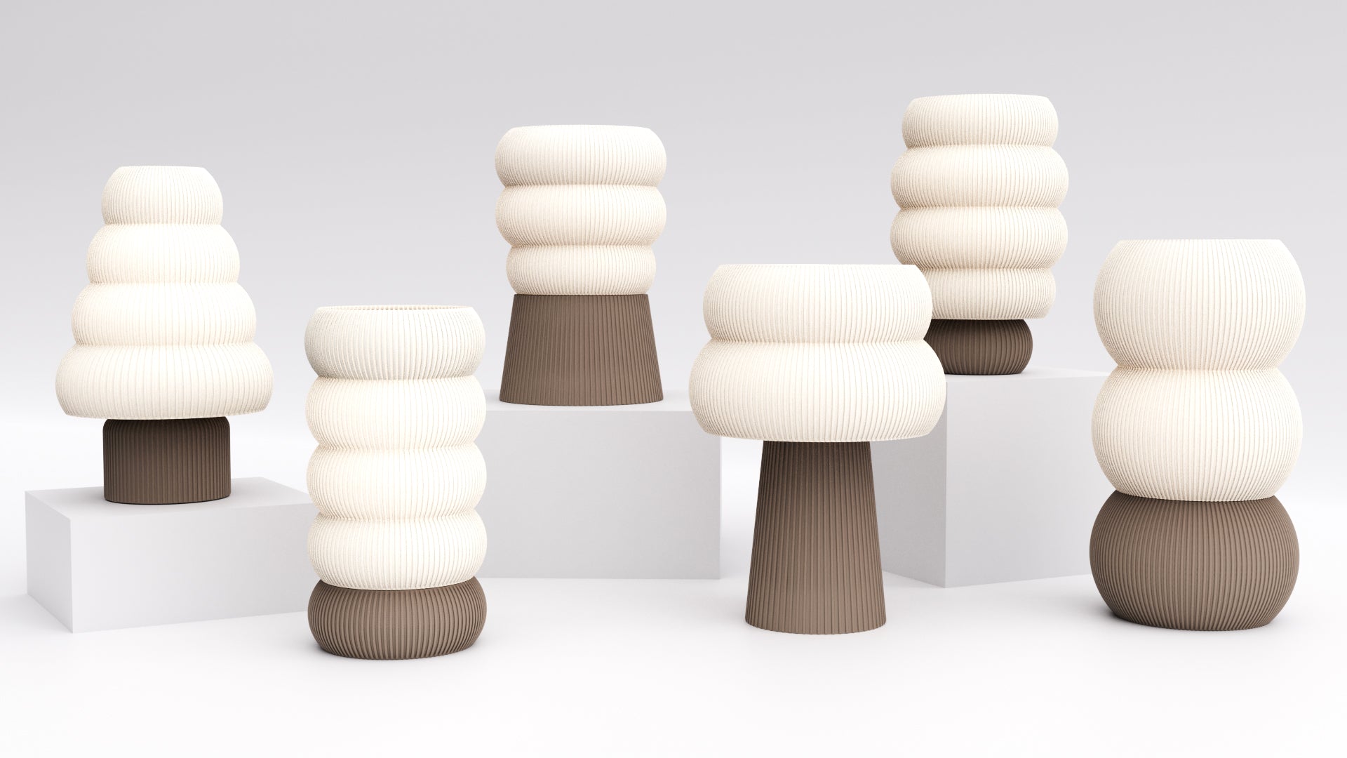 Each lamp is built around a universal lock system that allows bases and shades to connect seamlessly.